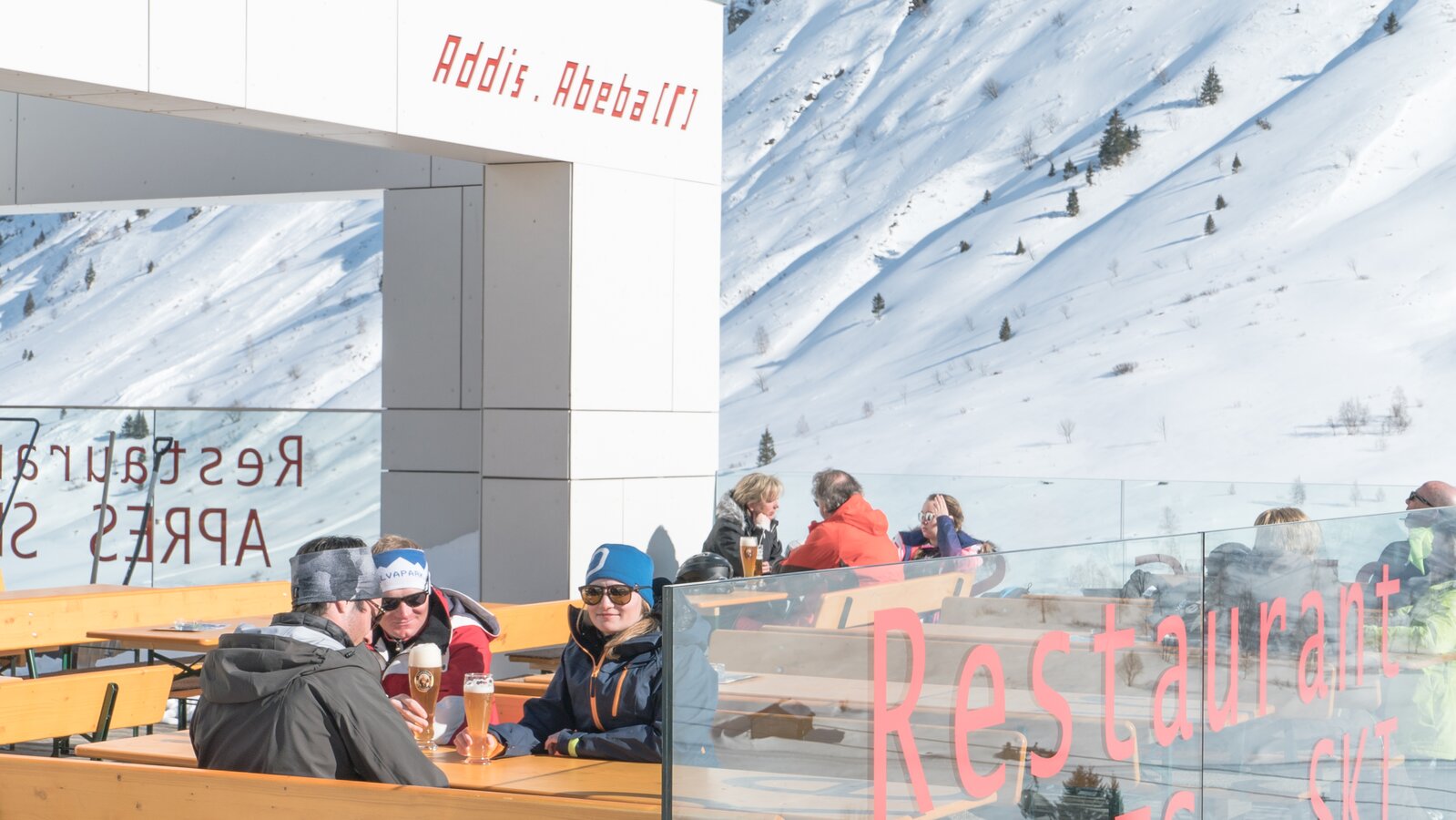 Addis Abeba[r] ist eine moderne Skihütte im Skigebiet Silvapark Galtür, bekannt als "die größte Schuhschachtel der Alpen" wegen ihrer Bauweise. Genieße in stylischem Ambiente erstklassige Bewirtung und DJ-Musik, die sogar auf 1.700 Metern Höhe Wärme wie in Addis Abeba bringt. Täglich ab 15:00 Uhr erwartet dich Aprés-Ski.