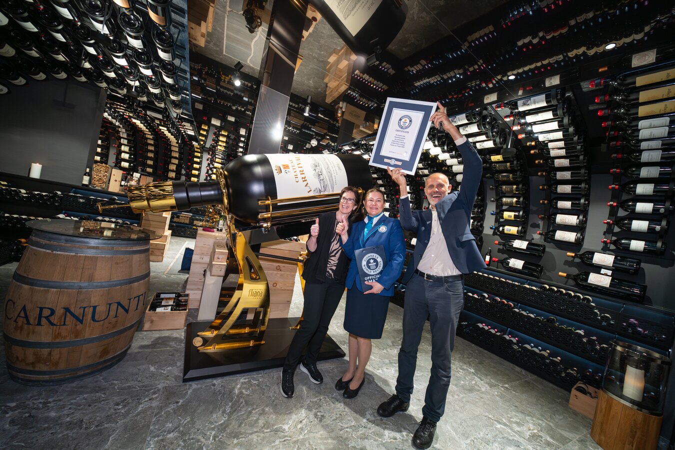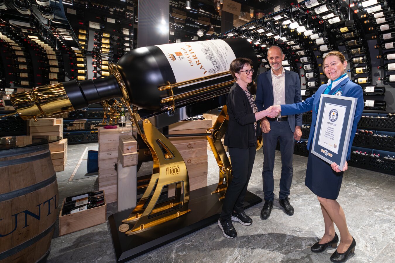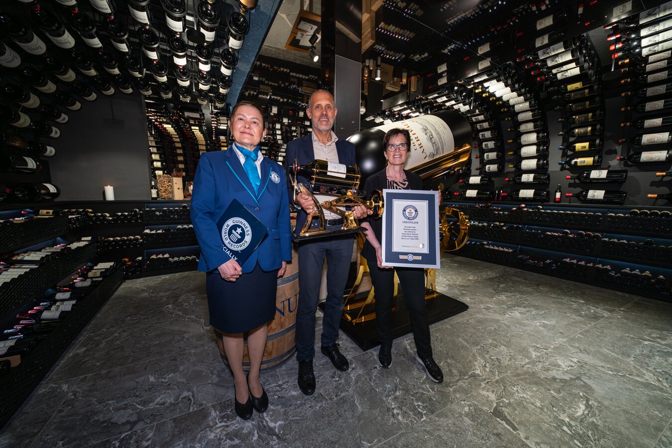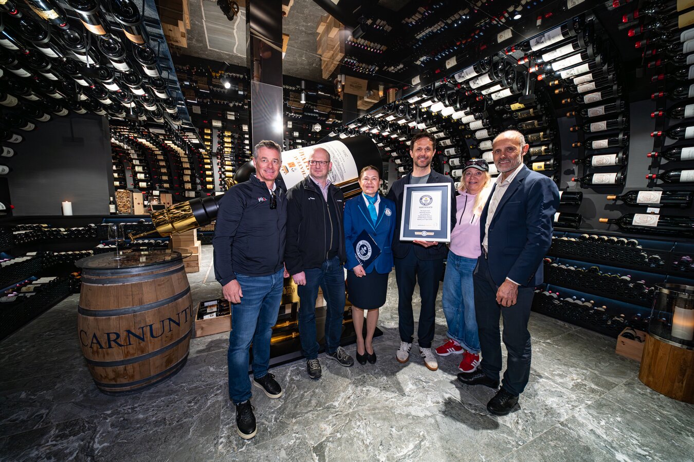 Under the official supervision of Guinness World Records adjudicator Seyda Subasi, accompanied by two independent witnesses and master builder Thomas Spiss, the world’s largest decanting machine was successfully tested and certified. The requirement was a capacity of at least 370 litres – an impressive 379 litres were achieved.