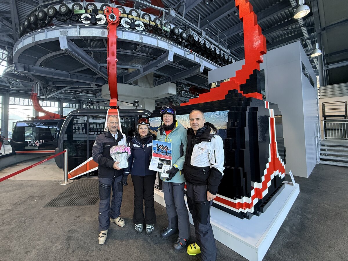 Mr Mahler, who, together with his wife, has been visiting Ischgl every year for an impressive 35 years, was personally welcomed by the directors of Silvrettaseilbahn AG, Markus Walser and Günther Zangerl. In recognition of their loyalty, the couple received a LEGO bouquet, an Insta360 action camera and a voucher for a delightful experience at the Alpenhaus.