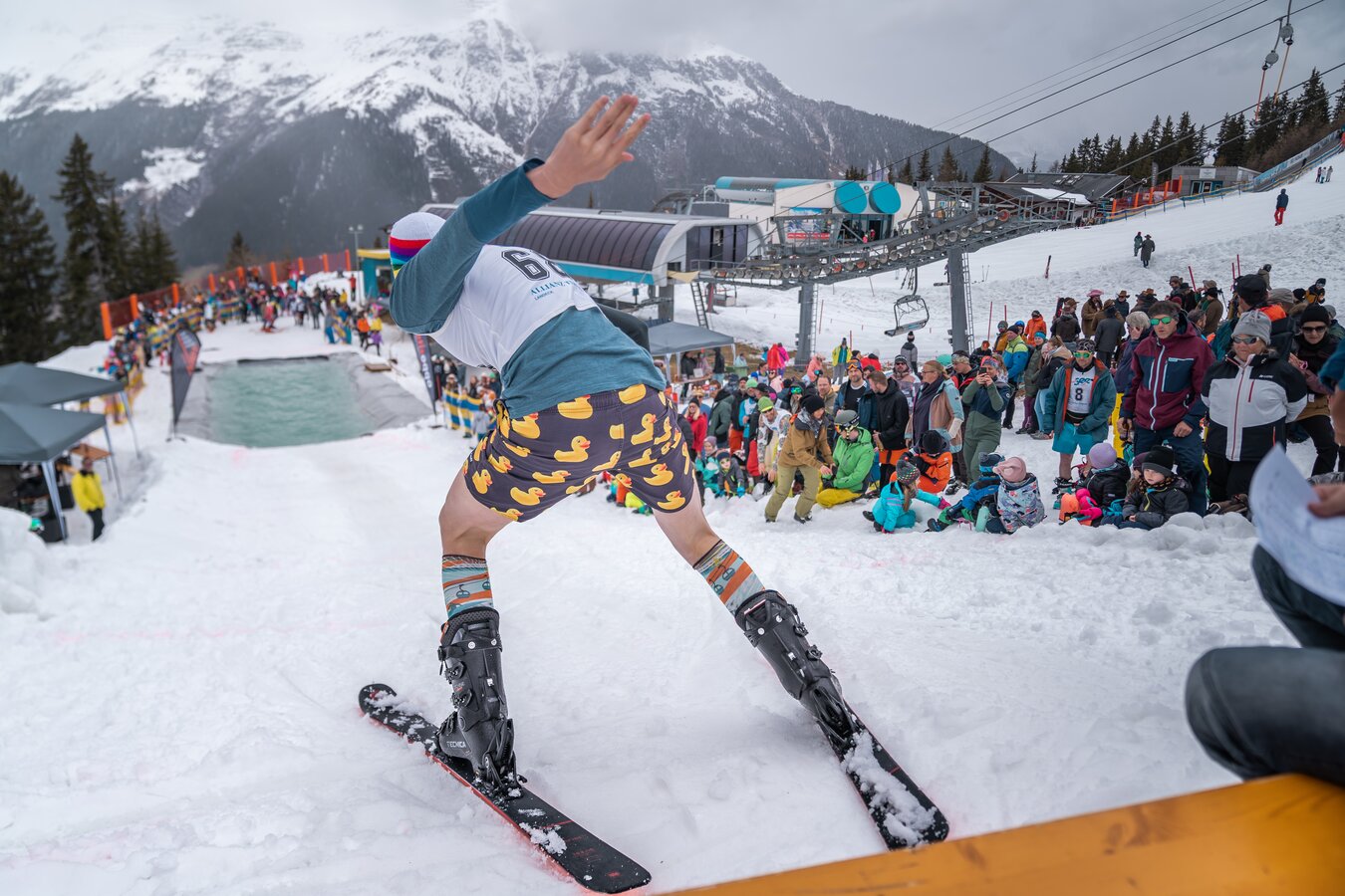 A real highlight awaits visitors on 4 April 2026 at the Medrigalm. At the Watersurf Contest, participants will demonstrate their courage, balance and style as they attempt to cross a 15-metre-long water basin on skis, a snowboard or in a creative outfit, complete with a show-stopping performance. Whether it’s spectacular tricks or refreshing landings – a great atmosphere is guaranteed. Additional entertainment is provided by the ‘Crazy Outfit’ category, where creativity and showmanship take centre stage. Registration takes place on site until 11:00 am, and the entry fee is 10 euros per person. The winners stand to receive prize money totalling 2,000 euros.